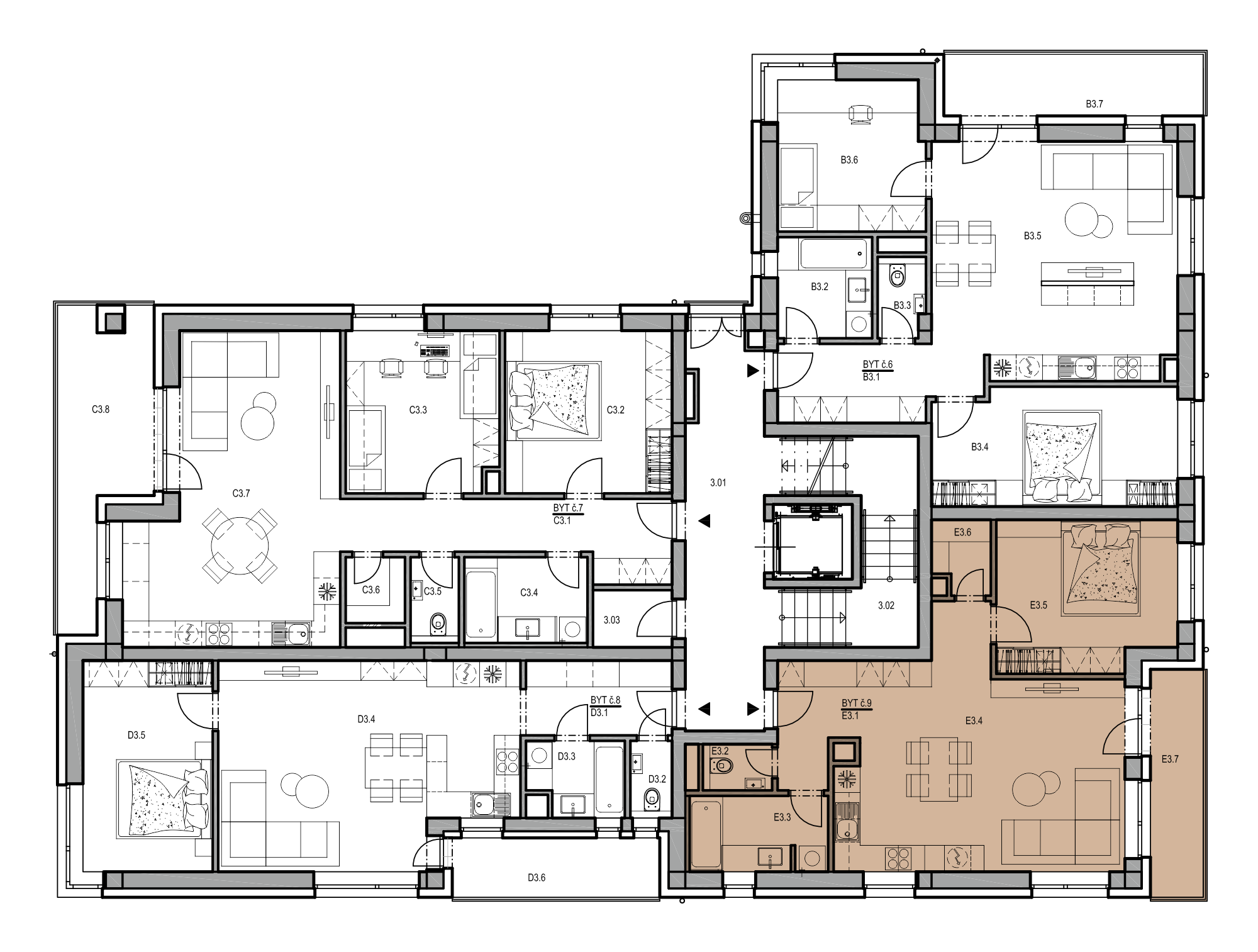 E3.4 OBÝVACIA IZBA S KUCHYŇOU  30,88 m²